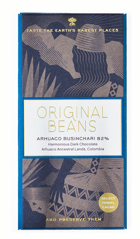 Original Beans chocolate from special cocoa from Colombia. The name of the bar already says ‘Arhuaca Businchari’ and comes from the indigenous Arhuaca people who live on the Carraibian coast of La Lengüete. The bar is called ‘Businchari’, in the language of the Arhuaca ‘a new beginning’, beautiful.