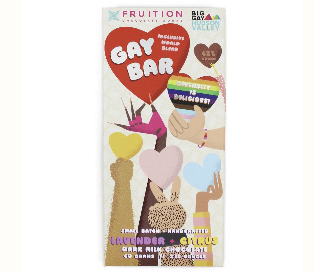 This Gay Bar is made in collaboration with Big Gay Hudson Valley, a local organization to the makers that supports LGBTQ+ rights. Part of the proceeds goes to them.