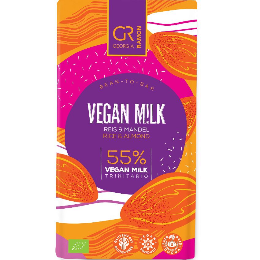 A vegan ‘milk’ chocolate from Georgia Ramon made with a fine combination of rice & almond.