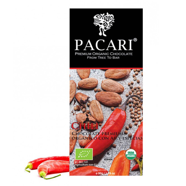 Cocoa, cocoa butter, cane sugar & chili pepper are from controlled organic agriculture.