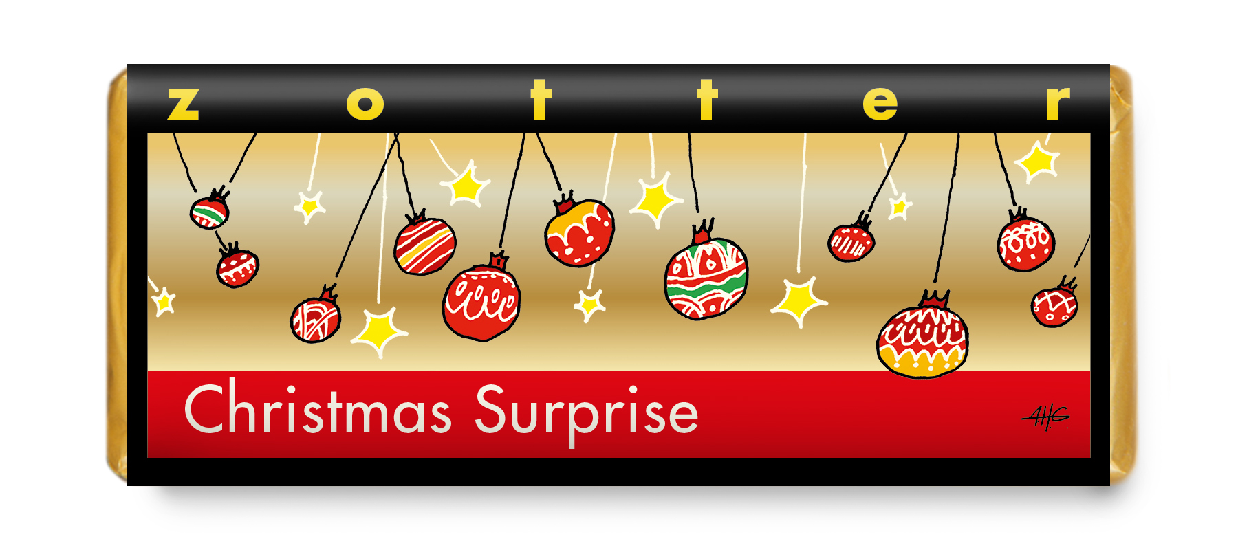 The makers say about it “A crispy, sweet Christmas chocolate, filled with a caramel and almond praline, freshly made from caramelized almonds, together with a little white chocolate and lots of crispy wafers. It has a wafer-thin layer of milk chocolate and is completely covered with a candy-sweet caramel couverture. Design with a golden pattern.”