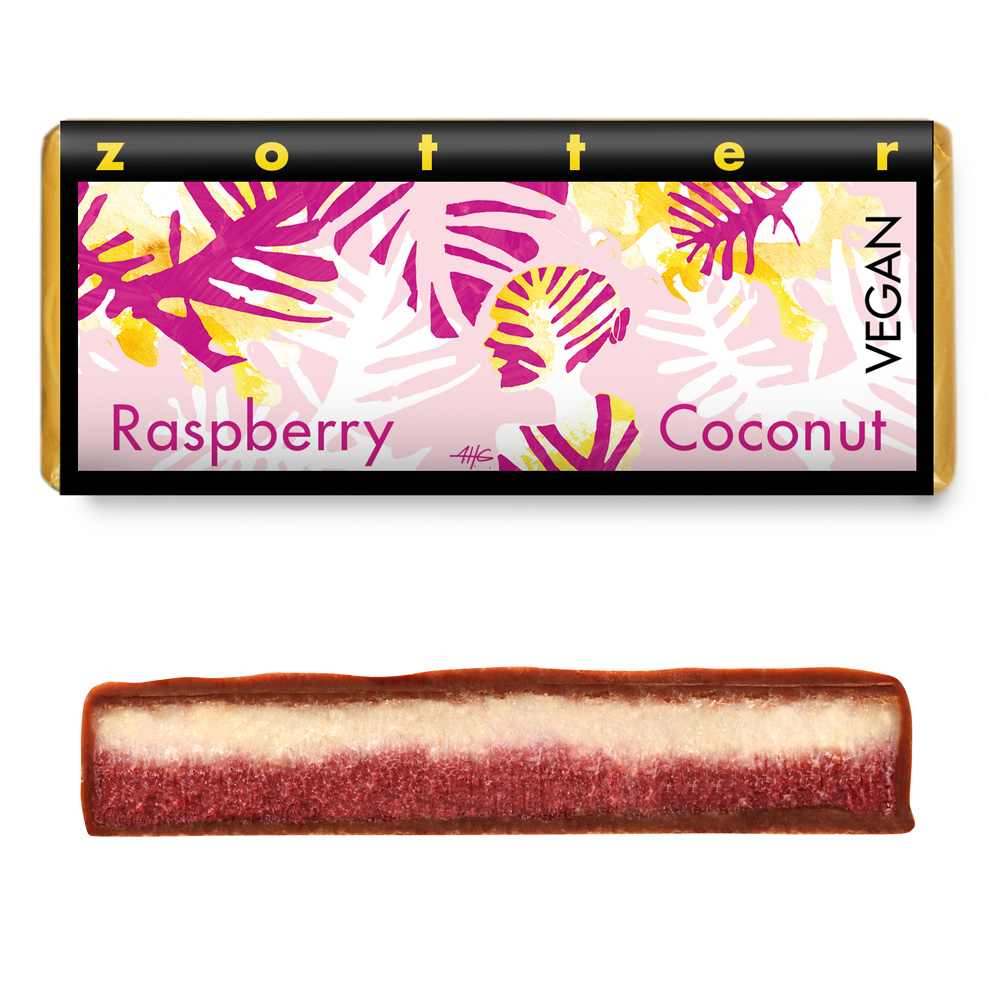 Zotter states: “The raspberry flavor is out of this world, the coconut flakes provide a crunchy bite, and the whole thing is both refreshing and completely vegan!”